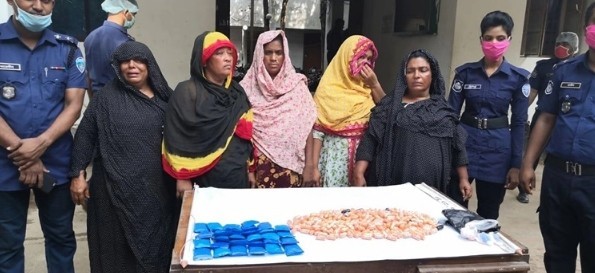 콕스바자르에 엄청난 양의 야바(마약류)와 함께 억류 된 5명의 여성