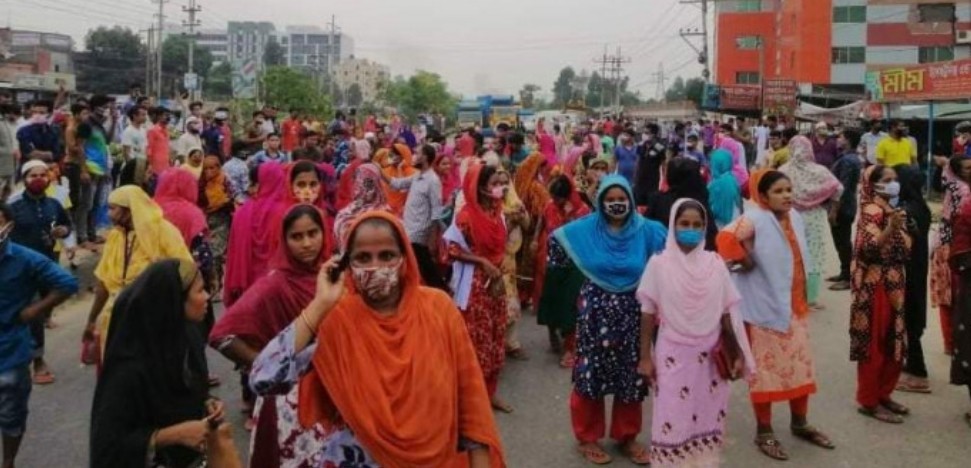 Gazipur에서 100 % Eid 보너스를 요구하는 봉제 노동자들 고속도로 차단