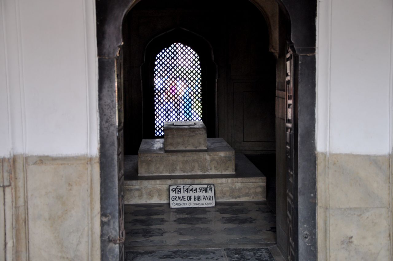 중앙에 있는 건물인 비비 파리의 무덤은 요새의 남아 있는 건물 중 가장 인상적이다. 8개의 방이 중앙 정사각형 방을 둘러싸고 있으며, 비비 파리의 유골은 거짓 돔으로 덮여 있고, 팔각형 모양이며 놋쇠 판으로 싸여 있다. 중앙 방의 전체 내부 벽은 흰색 대리석으로 덮여 있고, 4개의 중앙 방에는 최대 1미터 높이의 돌이 깔려있다. 네 모퉁이 방의 벽은 아름다운 유약 꽃 타일로 둘러싸여있다. 타일은 최근 복원되었다. 원래 타일은 현재 두 개가 남아 있다. 남동쪽 모퉁이 방에는 비비 파리의 친척 인 샴 사드 베굼(Shamsad Begum)의 것으로 알려진 작은 무덤이 있다. Lalbagh Fort Mosque는 세정을 위한 세개의 물 저장소가 있는 3개의 돔형 모스크이다.
