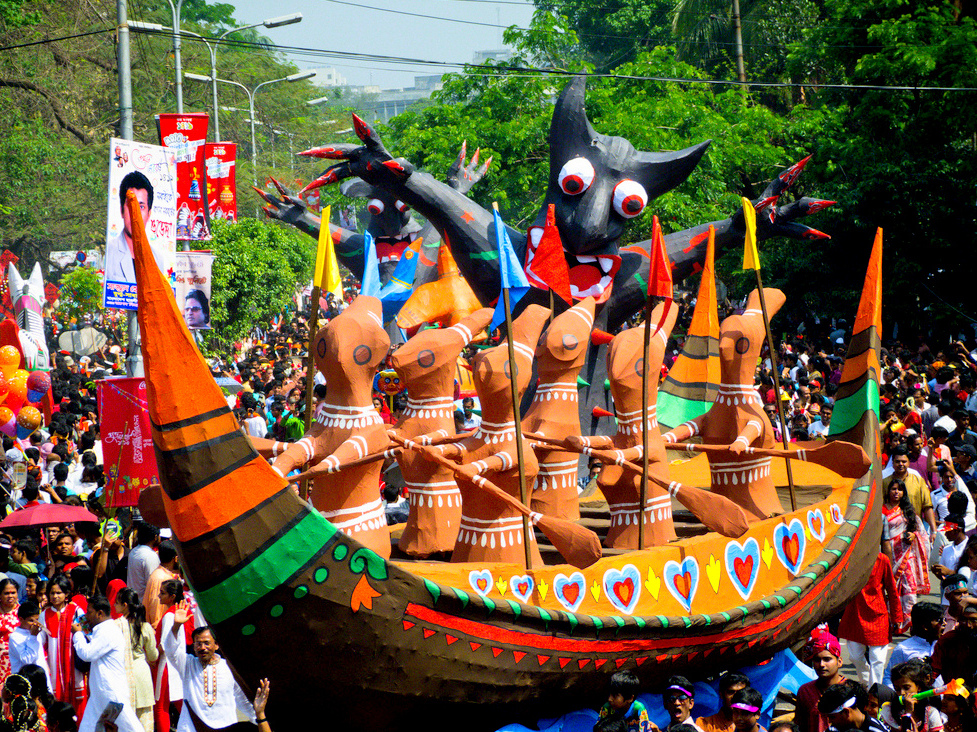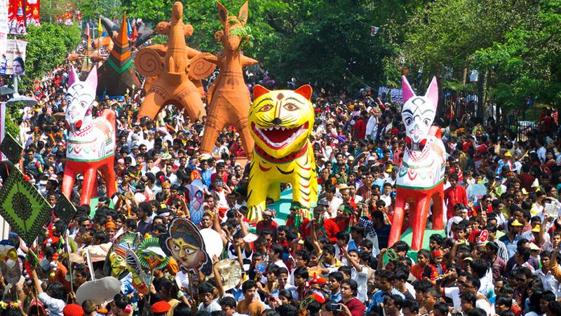 축제의 필수적인 부분은 Mangal Shobhajatra이며, 다카 대학(Charukala)의 미술 학부 학생들이 조직한 전통적이고 다채로운 가장행렬 이다.