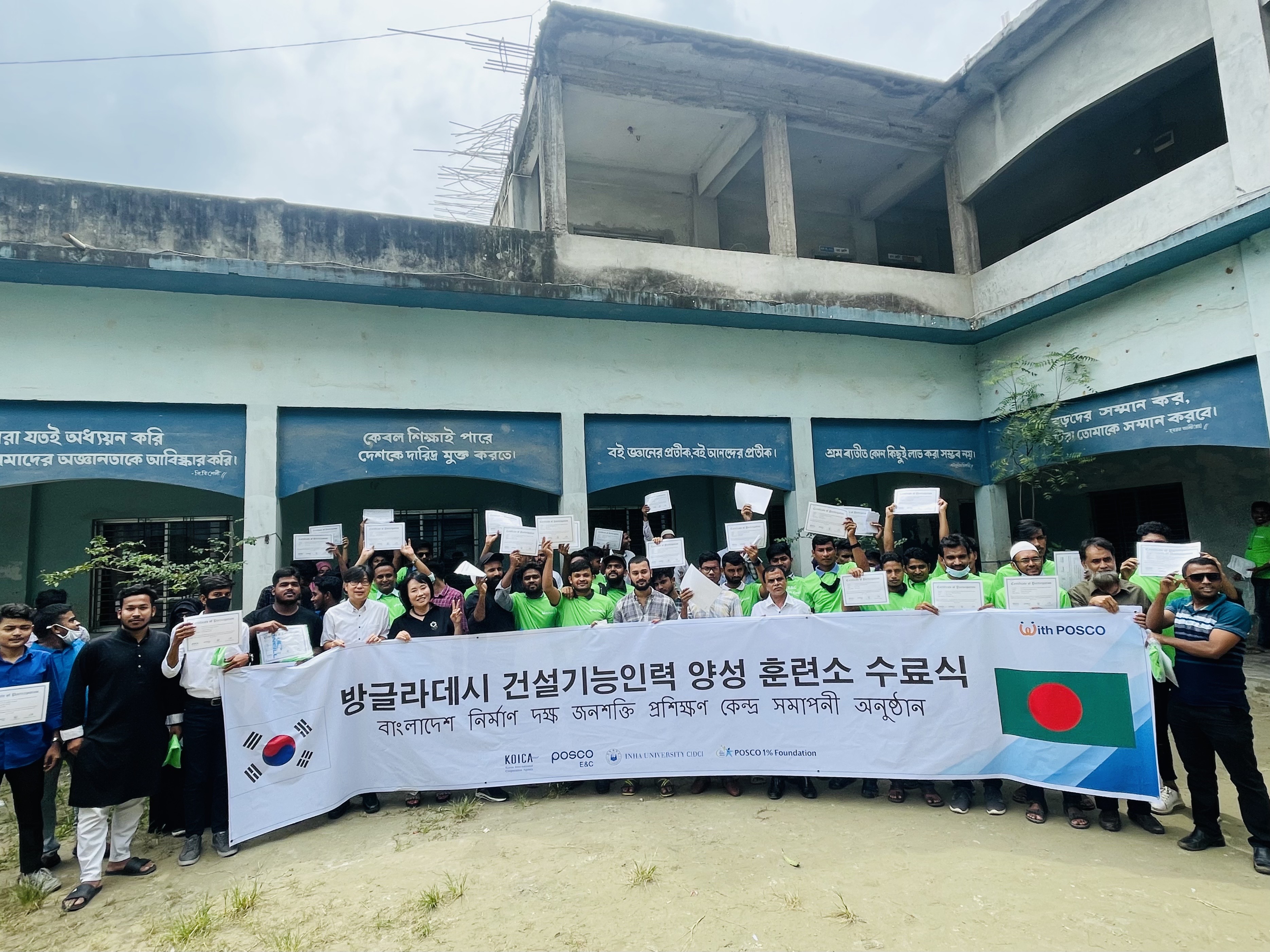 지난 23일 마지막으로 열린 4기 수료식은 방글라데시 현지와 온오프라인 연결을 통해 동시에 개최됐으며, KOICA, 포스코건설, 인하대학교 산학협력단이 참여해 수료증을 전달하고 교육생들에 대한 응원과 격려의 메시지를 전했다.